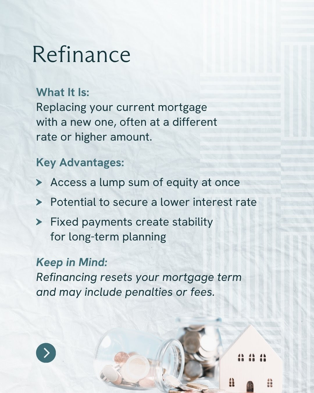 A strong plan starts with understanding how these options affect your cash flow and borrowing power. The right choice depends on your long-term goals, interest rate, and how you plan to use the funds.